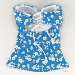 Twist Front Lace-Up Back Bandeau Tankini Top – Size XS